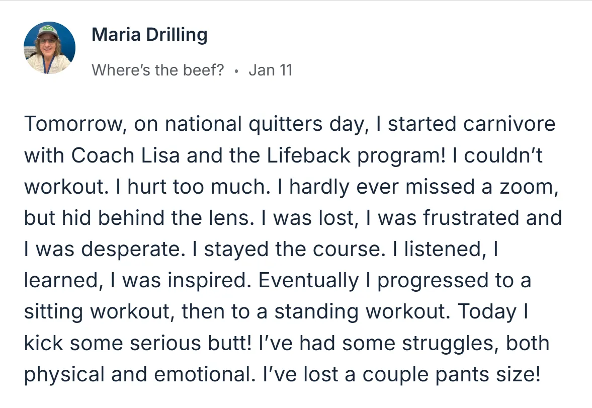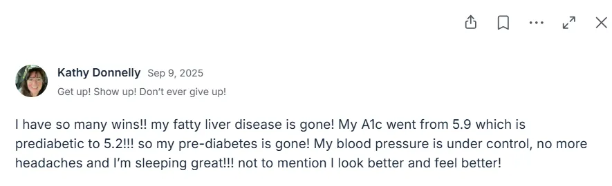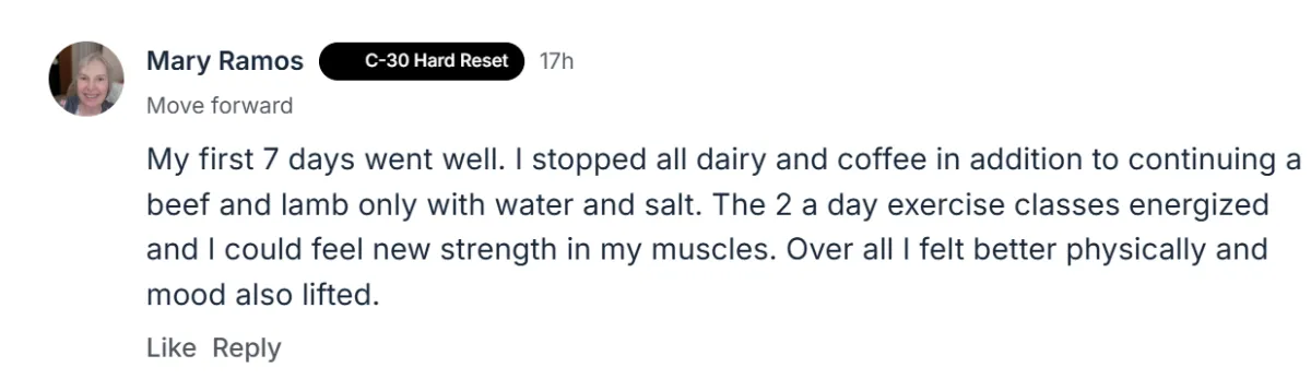 “Early signs of improvement are here. My headaches are lighter, my mind feels clearer, my energy is better, and my chronic gut issues are nearly gone.”